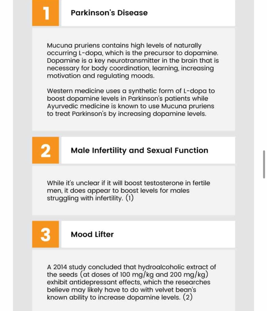 7. Antioxidant Properties: Mucuna contains antioxidants that help protect the body from oxidative stress and support overall health.
